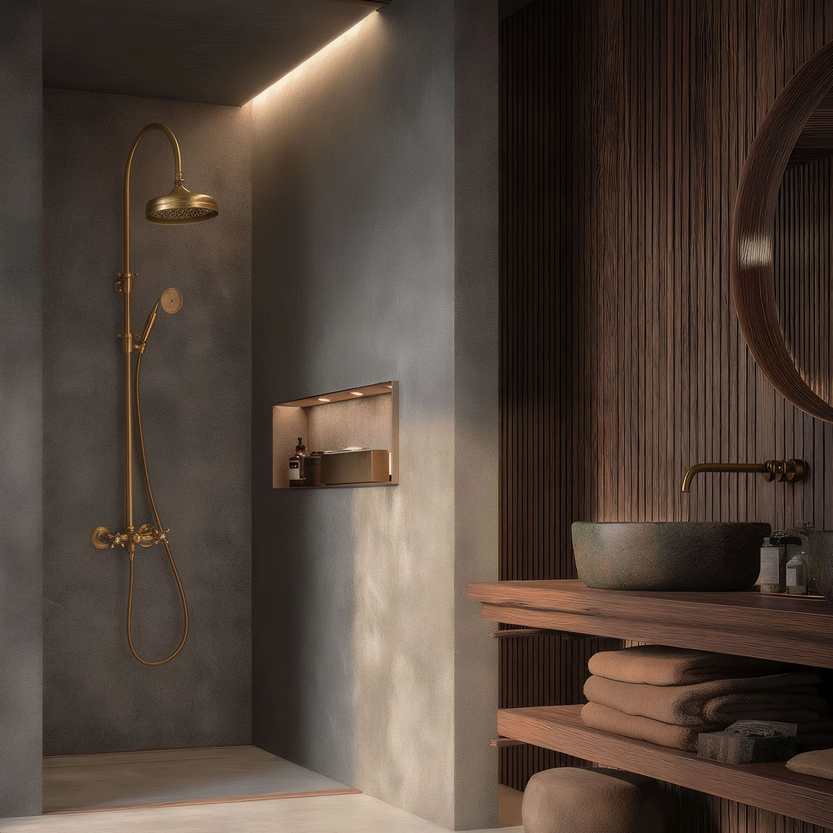 Interiorul în timpul iernii are un ritm propriu. Casele încep să strălucească din interior pe măsură ce lumina se înmoaie și aerul încetinește. În timpul sezonului de sărbători, căldura, introspecția și atenția la detalii sunt locurile unde se găsește luxul mai degrabă decât abundența.Baia, care este frecvent neglijată când vine vorba de decorarea pentru sărbători, este una dintre cele mai rafinate modalități de a adăuga acel lux subtil în casa ta. Întreaga atmosferă poate fi schimbată cu ajutorul elementelor de fixare corecte, în special cele cu finisaje aurii și bronz. Acestea transformă o zonă utilitară într-un refugiu calm, care este atât festiv, cât și clasic.Aceste metale nu cer atenție. Chiar și băile minimaliste sunt date un sentiment de măreție liniștită de strălucirea lor, care captează lumina blândă de iarnă și echilibrează tonurile reci de piatră și gresie.