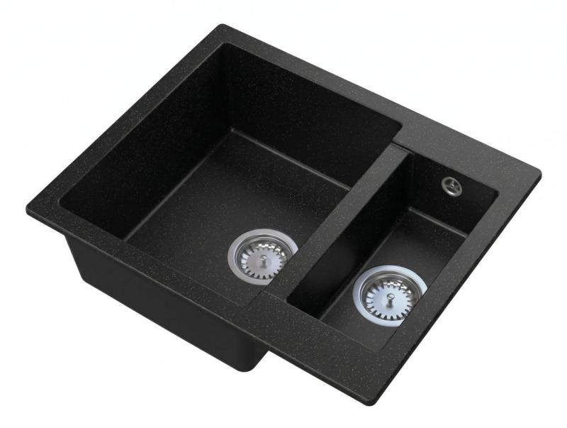 Graniteland Adda Granit aspect piatră dură neagră 1.5 Chiuvetă deasupra blatului 600x495mm cu dop din inox 1208970619