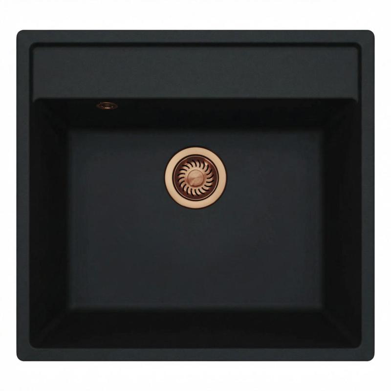 GraniteMy Bremen Chiuvetă granit 53x50 cm Negru – Montare deasupra, dedesubt și la nivel cu Banchetă pentru robinet și Dop de cupru 1208969970